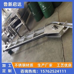 白條提升機-全自動豬體上掛機主要由電動機蝸輪減速器、機架、傳動鏈、漲緊裝置、導引推力板等組成。電動機裝在呈35度傾斜的機架上部,通過蝸輪減速器帶動鏈輪使傳動鏈運轉。鏈條上每隔1500毫米裝有一只導引推力板,推動滾輪沿斜面軌道前進,從而將掛在滾輪鉤子上的毛豬或白條肉提升至所要求的高度。根據屠宰車間生產工藝的需要,當改變傳動鏈的運轉方向時,本機亦可作為下 降機使用。該機具有結構簡單,輕便靈活,操作與維修方便等優點。