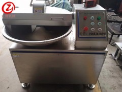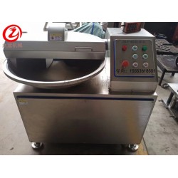 斬拌機對原料進行斬切,攪拌和乳化,防止原料肉中肌紅蛋白,脂肪及其他營養成分被氧化,破壞,從而大限度的保留了原有的色香、味及各種營養成分。通過斬切提高了產品的細密及和水的親和力,使產品的彈性得到提高,該機具有刀軸轉速高,功率大,斬切乳化效果好,處理原料范圍廣等特點。不僅可斬化,乳化各種肉類,也可斬切,乳化肉皮,筋腱等粗纖維和復合膠原蛋白的原料。