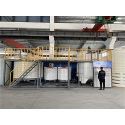 可見:在不增加人工數,不增加設備的情況下,生產效率顯著提高,由原日產17噸,提高至日產50噸,同時電耗僅為原工藝的28%,煤耗為原工藝的29%。對能源的消耗降低極其顯著。而產品的性能在原工藝基礎上有所提高。 全自動聚羧酸合成設備關鍵技術特點: 1、各原料貯罐、滴加罐和攪拌主機料倉,均采用***復合材料,該復合材料具有防腐蝕、強度高的技術特點,并且壽命較塑料、鋼質材料有較大的提升,降低客戶后期使用和維護***; 2、各原料的入料,包括粉料和液料,均實現計量控制,并且將各數據通過數據總線反饋到總控制臺,實現過程監控; 3、通過可編程控制器,設定程序,對各原料的添加實現智能控制,自動稱衡,并且相關稱衡量可以反饋到控制面板上,實現過程控制; 4、各計量泵及管路均采用***材料; 5、設備簡單,占地面積小,設置工作平臺,工作平臺采用模塊化拼裝,實現安裝、拆卸和運輸方便; 6、設備造價低,降低客戶初期投入; 7、攪拌主機、滴加裝置和控制系統預留滴加單元,方便以后合成復配的增加。