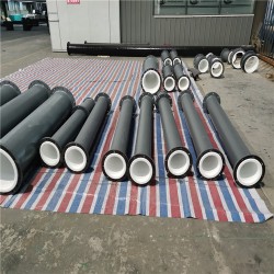 PO襯塑管道 PO襯塑管道直管 PO襯塑管道短管長度可做0~6米一根,但是并不是所有型號都能做6米長,主要與其生產(chǎn)工藝有關(guān),小口徑的,比如DN100以下的一般做2-3比較合適,DN100-DN200的做4-5米。DN200以上的可以做6米。