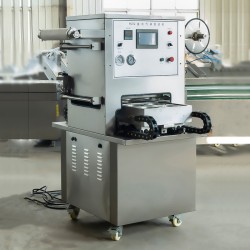 梅菜扣肉真空封口機 即食羊雜真空機 椒麻雞真空機 上卷膜經導輥后覆蓋在成型盒上。視包裝需要,可進行抽真空或充入保護氣體的處理,然后進行熱壓封合