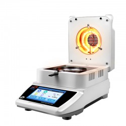 化工濾料水分檢測儀的使用方法并不復雜,測試結束時直接顯示樣品的水分含量及固含量,無需人工計算。在儀器0.000g狀態下,取2~3g的濾料試樣置于樣品盤內,蓋上加熱倉罩子,選擇啟動后開始加熱測量,測試結束時,儀器自動鎖定顯示樣品的水分含量。