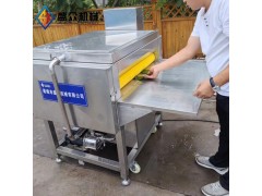 粽葉清洗機有14根毛刷輥、水箱、架體、電機等組成。工作時,14根毛刷輥同時轉動對粽葉進行刷洗,設備帶有水循環系統,清洗完的水經過濾再經水泵抽到上方噴淋管進行二次被利用,以節約用水。操作工將粽葉喂入設備,進入上、下二層毛刷輥洗刷,由于**組毛刷與后面毛刷有一定的速差,清洗時粽葉后端形成一定的拉力,從而模擬了人的動作,達到一次完成粽葉兩面清洗的目的,大大提高了清洗效率,降低人工成本。