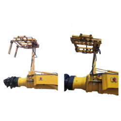 本裝置是用來對掘進工作面新揭露的空頂區進行臨時支護的一種機載式輕型支架,當掘進機的掘進循環完成后,將該機器打開,可以迅速在掘進機切割頭前方頂板上形成有效的支撐防護,為下一步在該區域進行支護作業的人員提供一個安全可靠的工作空間。